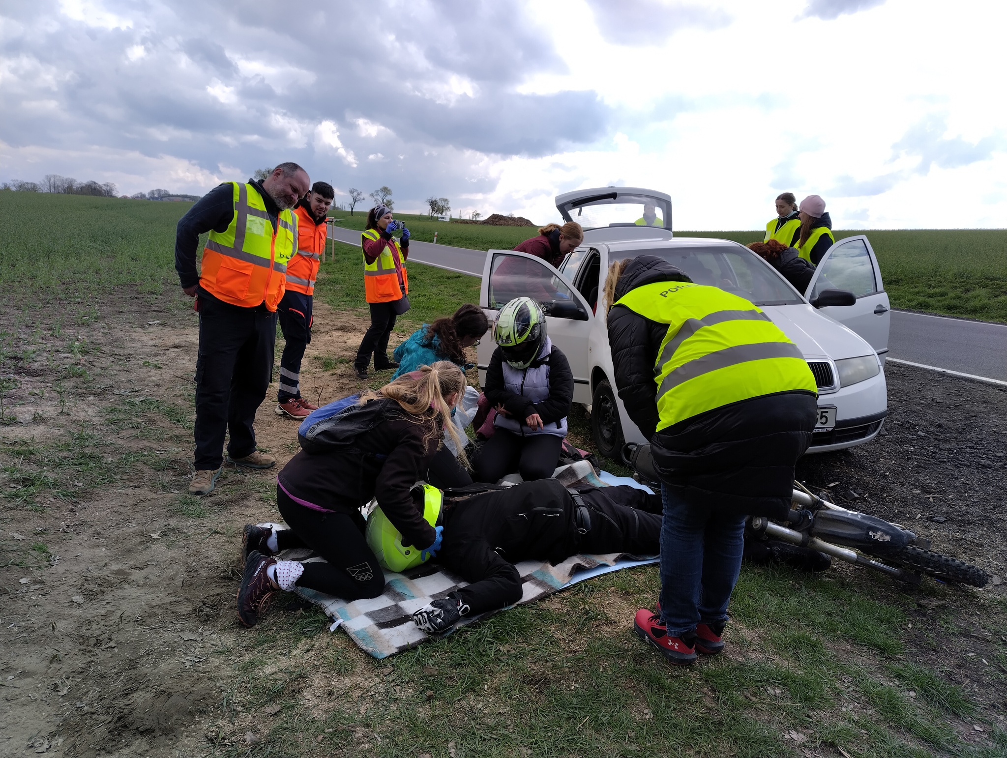 Ve dnech 20.–21. 4. náš tým ve složení Eliška Urbanová (kapitánka), Leontýna Coufalová, Aneta Matějíčková a Veronika Janů skvěle zvládl čtyři náročné modelové situace i intenzivní noční akci. A koho ošetřovaly? Nespolupracující intoxikované, úraz elektrickým proudem, autonehodu, tonutí, úrazy v lese a další akutní stavy.